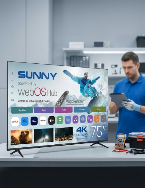 Sunny Gaziantep Yetkili Servis olarak, profesyonel televizyon servis hizmetlerimizle müşterilerimize hızlı, güvenilir ve kalıcı çözümler sunuyoruz. Teknolojinin her geçen gün gelişmesiyle birlikte televizyon sistemleri de daha karmaşık bir yapıya kavuşmakta; bu durum uzmanlık ve doğru ekipman kullanımını zorunlu hale getirmektedir. Bu bilinçle, alanında deneyimli teknisyen kadromuzla televizyonlarınızda oluşabilecek her türlü teknik arızaya titizlikle müdahale ediyoruz.